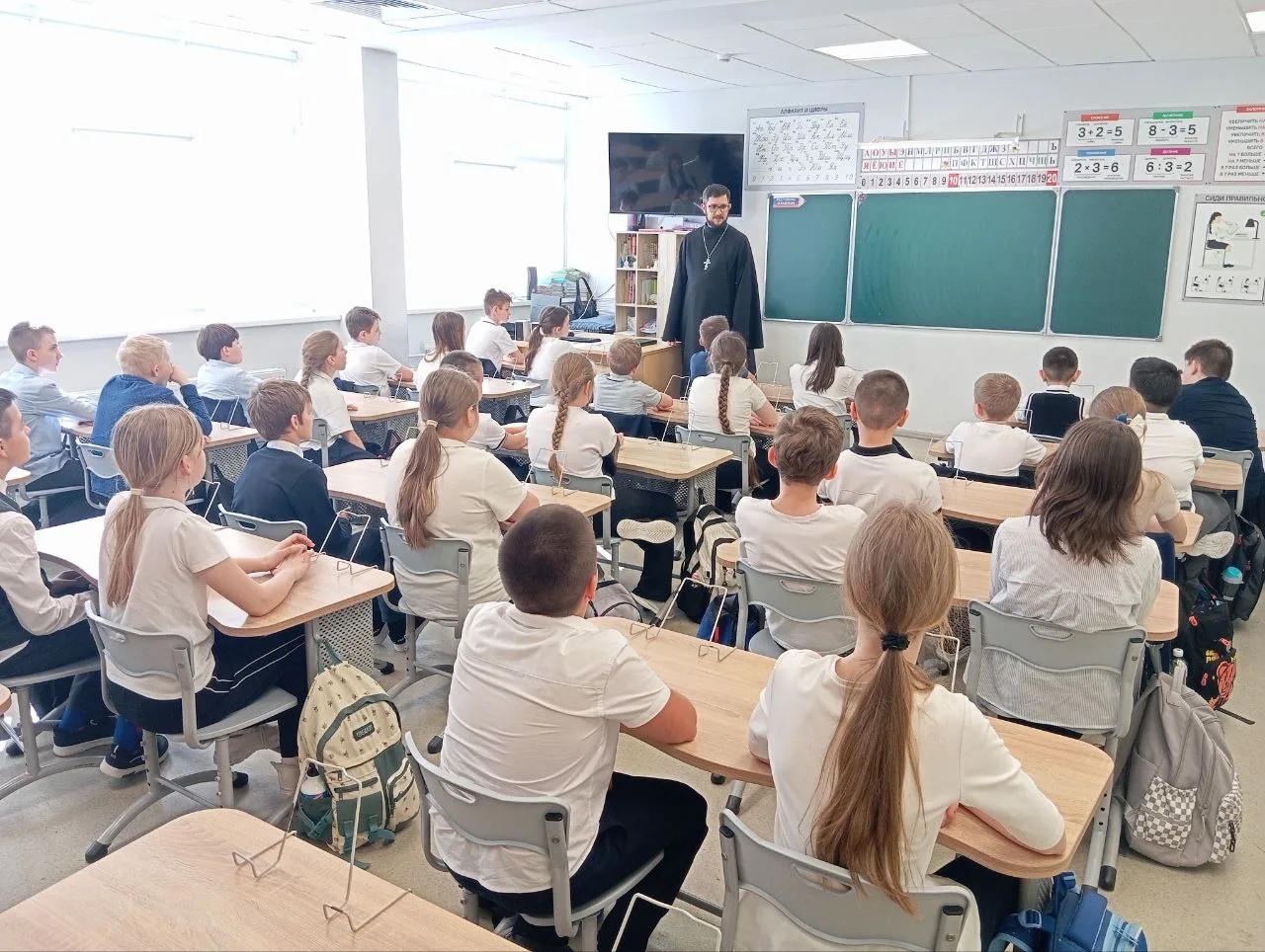 17 марта в МОУ «Лицей №5» г. Подольск в рамках взаимодействия в сфере духовно-нравственного воспитания прошла встреча настоятеля Спасского храма д. Никулино иерея Антония Самоделкина с учащимися 4 класса, посвящённая Дню православной книги. Священник рассказал учащимся об истории праздника и важности чтения книг. Школьники смогли увидеть настоящую ксилографию, а также богослужебное Евангелие и современную православную литературу. Ребята активно участвовали в беседе и задавали вопросы.