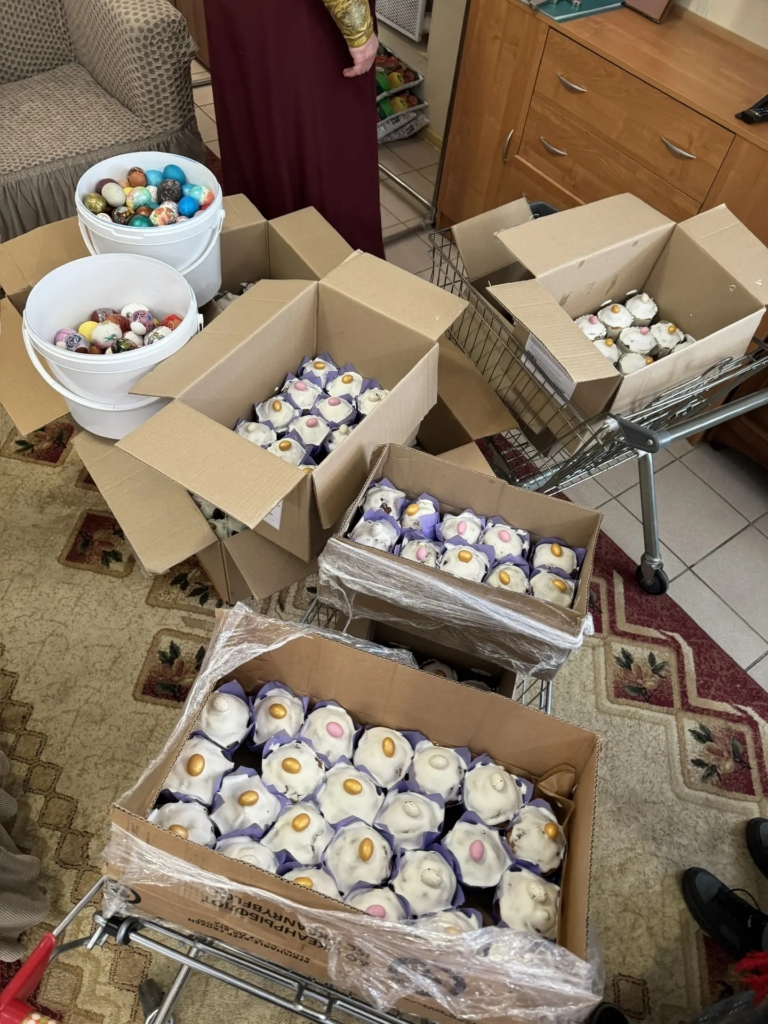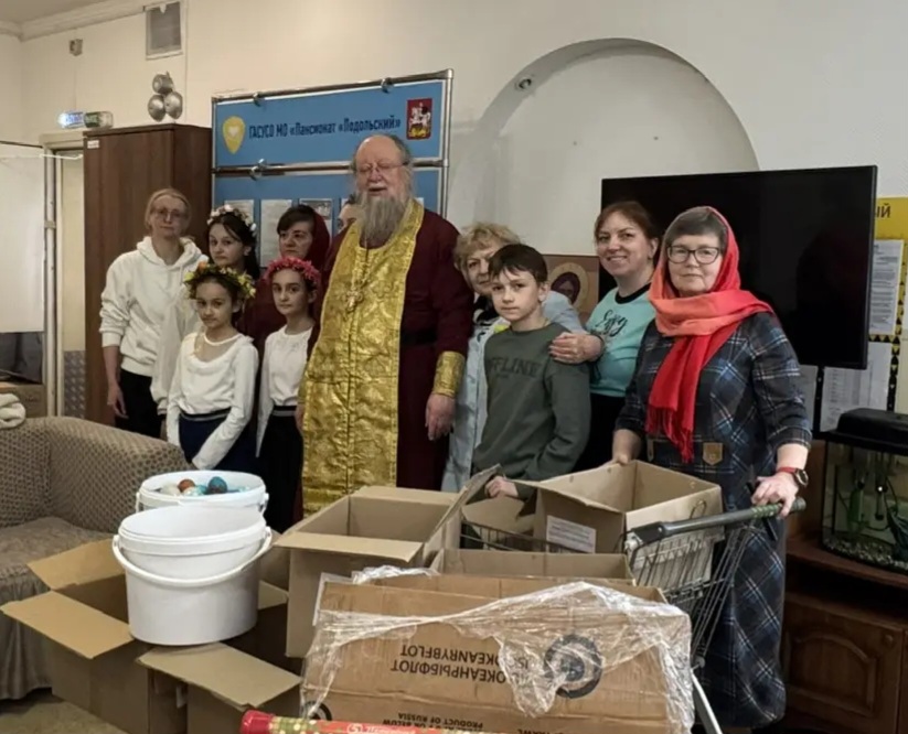 13 апреля участники волонтерского движения Подольского благочиния «Милосердие — Подольск» поздравили с Пасхой проживающих 4 корпуса ГАСУСО «Пансионат «Подольский». Всем подопечным были вручены освященные куличи, яйца, сладости.