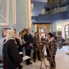 По завершении службы участница молодежного клуба «Ихтис» при Знаменском храме Мария Грицышина провела для молодежи экскурсию по храму, после которой в здании воскресной школы состоялось чаепитие.